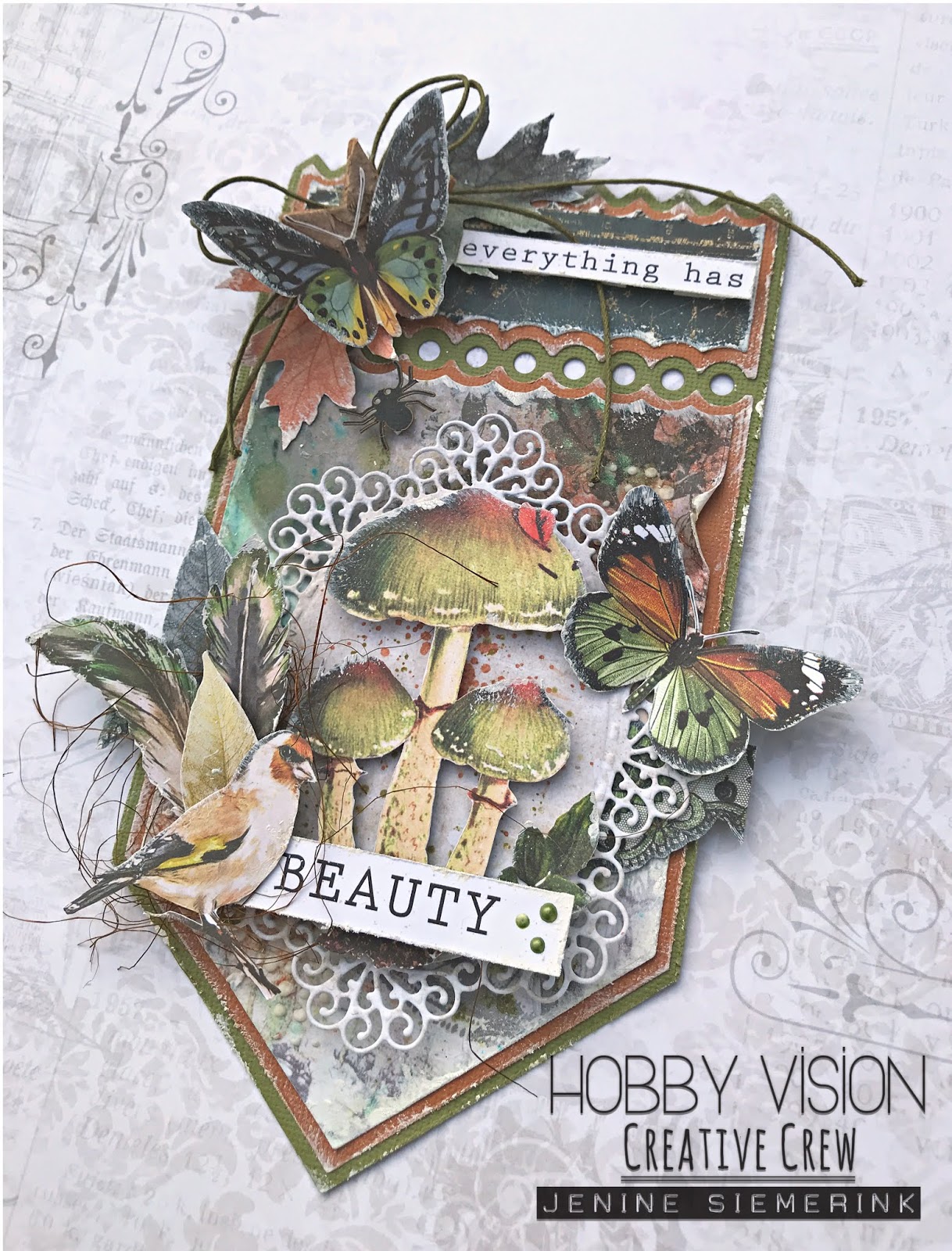 Dit is ook gelijk mijn voorbeeld voor de nieuwe Challenge op ons HobbyVision Creative Crew Blog. De Challenge is: verwerk Paddestoelen