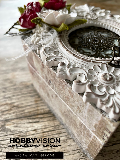 Als eerste heb ik het doosje in de witte gesso gezet.