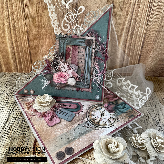 Wat 'n mooie easelkaart heb je gemaakt Anita, in dit model en deze kleuren! Heel fijn gedaan zo.