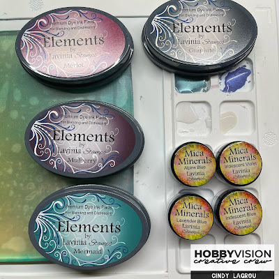 De pagina's waar de meisjes op staan heb ik met de gellyplate gedaan een simpele techniek met Lavina inkt en wat Mica Minirals waarbij je in geen tijd leuke achtergrondjes krijgt.